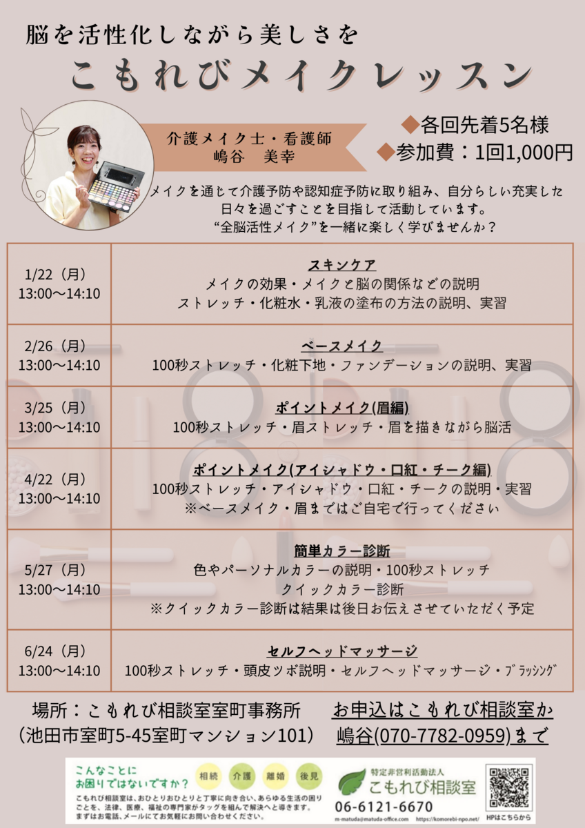 1/22は現役看護師で介護メイク士の嶋谷美幸先生のメイクレッスンが初開催~!✨